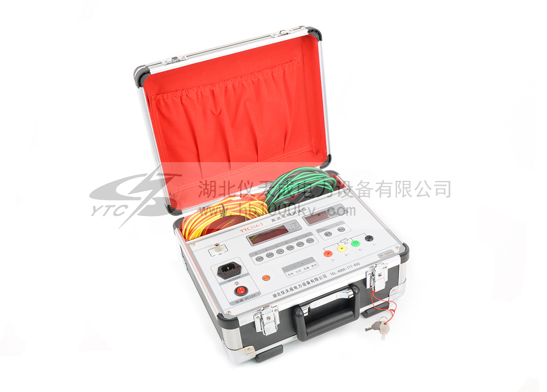 YTC316-3直流電阻測試儀 是取代直流單、雙臂電橋的高精度換代產品。儀器采用了的開關電源技術,其測量速度比電橋快一百多倍,顯示部分由四位半LCD液晶顯示測量結果,三位半LCD液晶顯示環境溫度或測試電流值,克服了其它同類產品由LED顯示值在陽光下不便讀數的缺點,同時具備了自動消弧功能。本儀器具有測速快、精度高、顯示直觀、抗干擾能力強、體積小、耗電省、測試數據穩定可靠、不受人為因素影響等優點。儀器內裝可充電電池組(14.8V),交直流兩用,便于現場及野外測試。