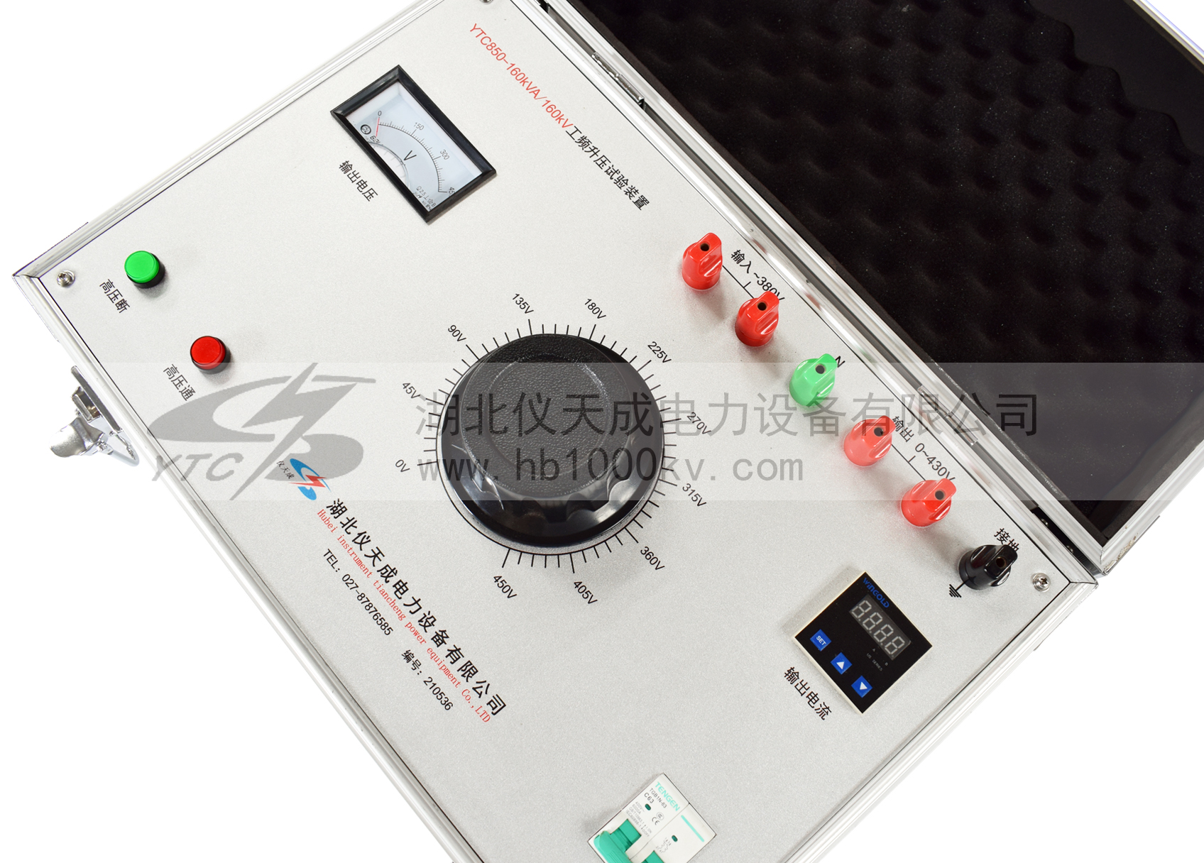 6、調壓控制箱設有過流保護功能,過流保護采用撥碼整定。您在做試驗時,先大致計算好所須的最大低壓電流值,然后將撥碼盤撥碼到所須的計算值,其單位為安培。