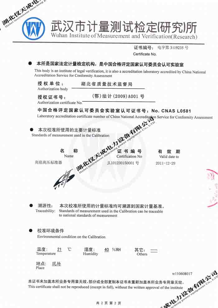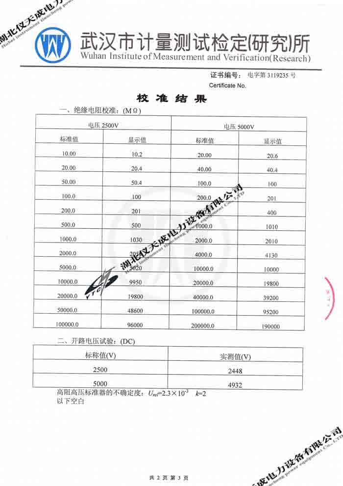 轉(zhuǎn)載:"YTC2000智能雙顯絕緣電阻測試儀的資質(zhì)證書" 請注明來源于儀天成電力。 更多技術(shù)問題請致電儀天成電力客戶服務(wù):027-87876585,技術(shù)部專線:027-87876585,在線客服:719388481